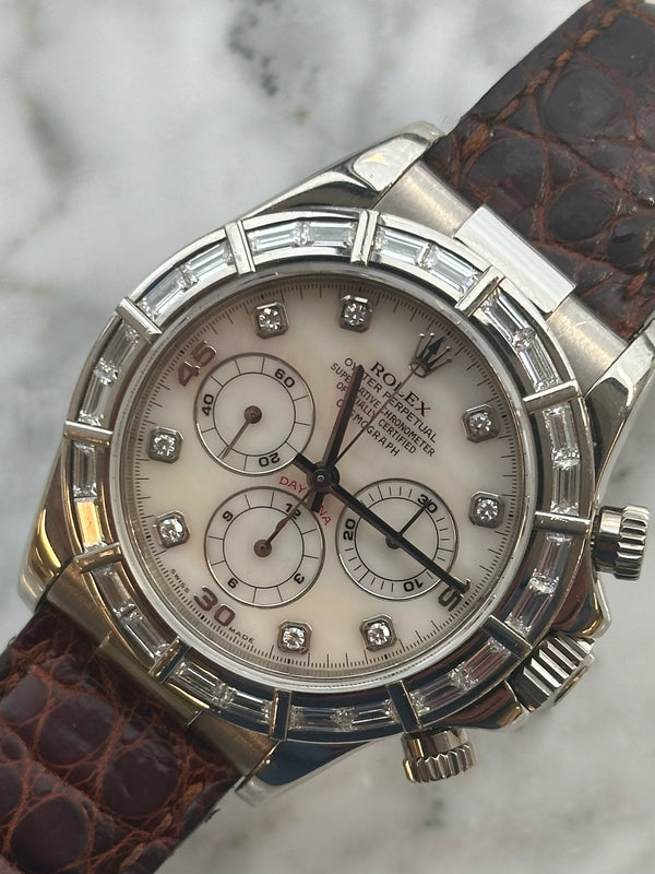 Over the years, Rolex has delivered iconic pieces, including the Rolex Submariner, Daytona, and Datejust. Its wide range of collections offers a watch for every style and taste. All Rolex watches are made with the finest materials, including: gold, platinum, stainless steel, and precious gems. They are powered by proprietary movements known for their accuracy and reliability.