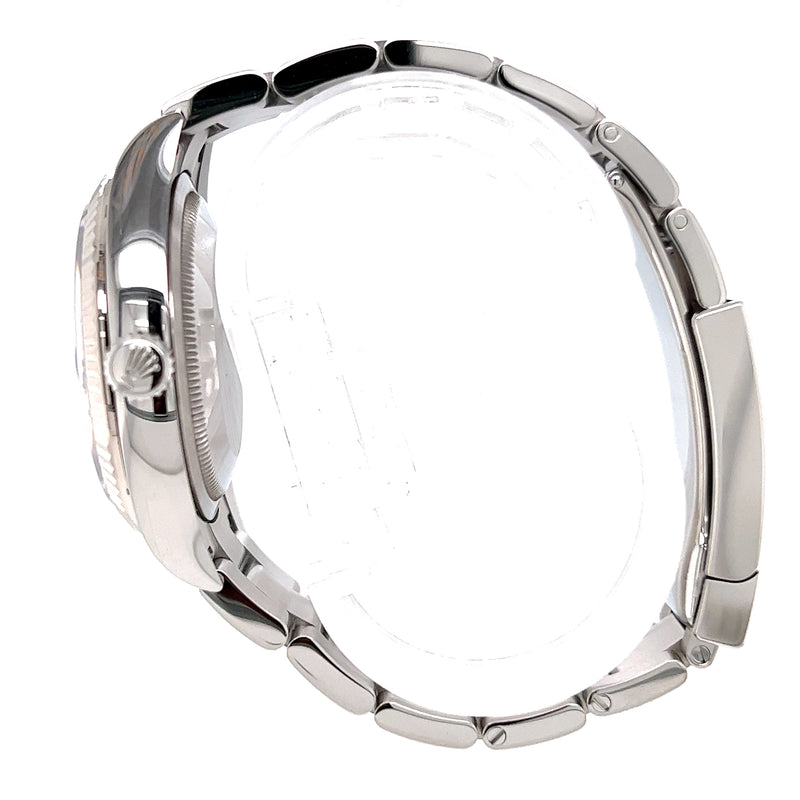 This watch depicts no signs of wear. This watch includes the original Rolex warranty card and the original Rolex box. The watch also includes a 1 year David and Sons Timepiece warranty.