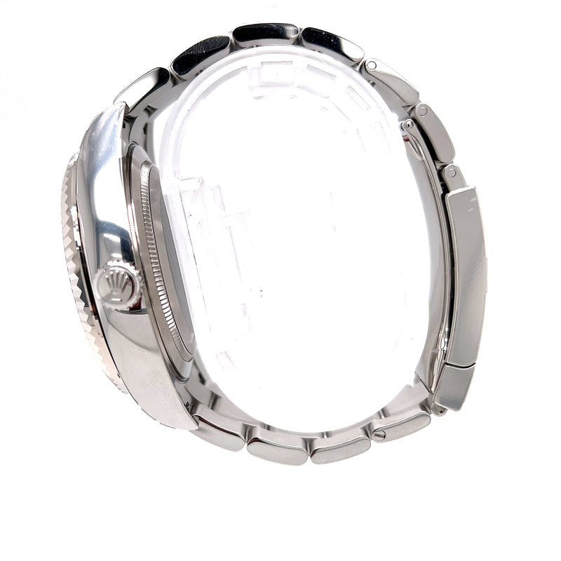 Unworn 2021 42mm White Gold 326934 Rolex Sky-Dweller Black Index Dial with a Fluted Yellow Gold Bezel on an Oyster Bracelet.