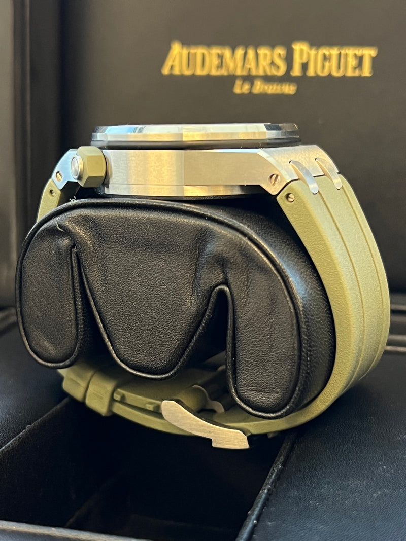 This watch depicts minimal signs of wear. This watch includes the original Audemars Piguet box and warranty card. The watch also includes a 1 year David and Sons Timepiece warranty.