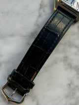 This watch depicts some signs of wear, and includes the original Cartier box. The watch also includes a 1 year David and Sons Timepiece warranty.