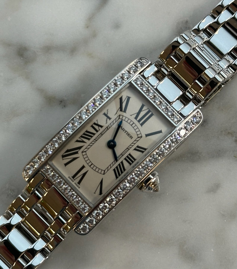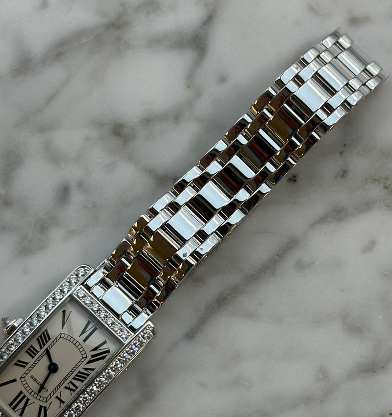 Cartier - Pre-owned White Gold Tank Américaine 19 x 35mm Diamond Bezel 2489