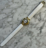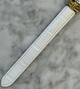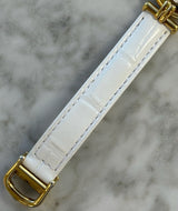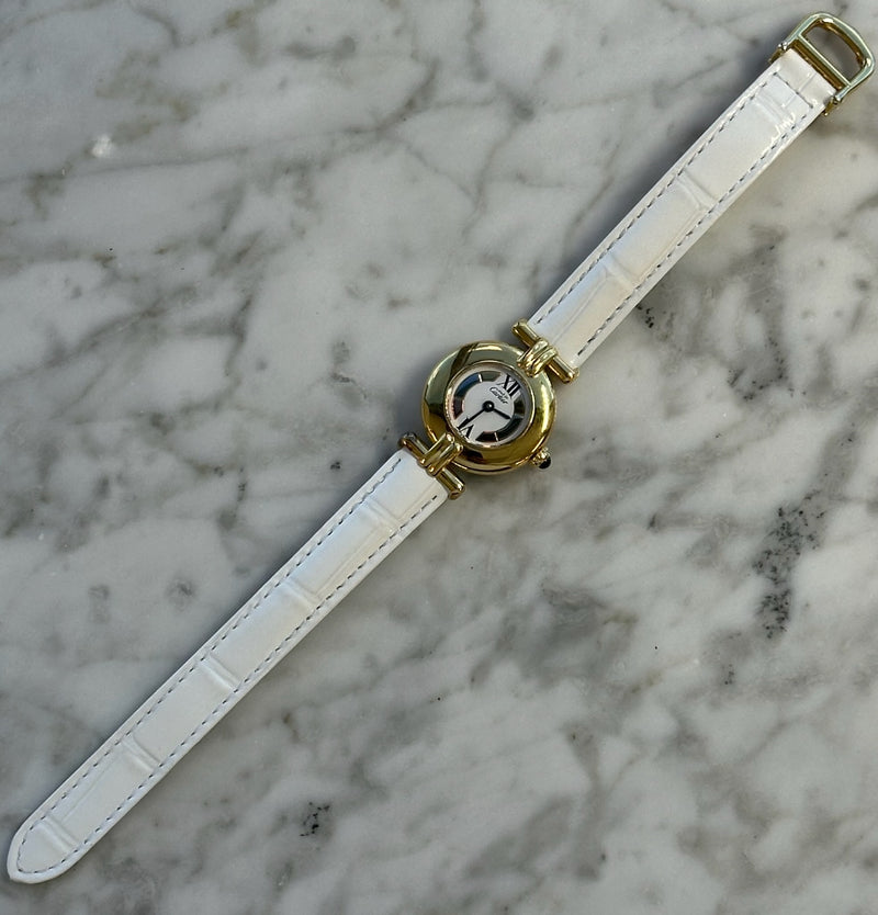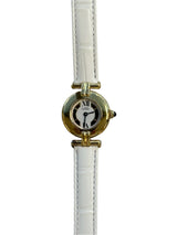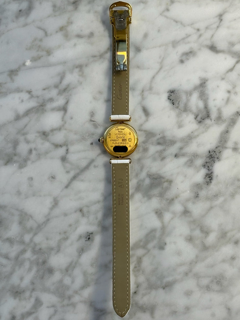 Pre-owned 24mm Plated Yellow Gold 590002 Cartier Vermeil White Dial with a White Leather Strap.