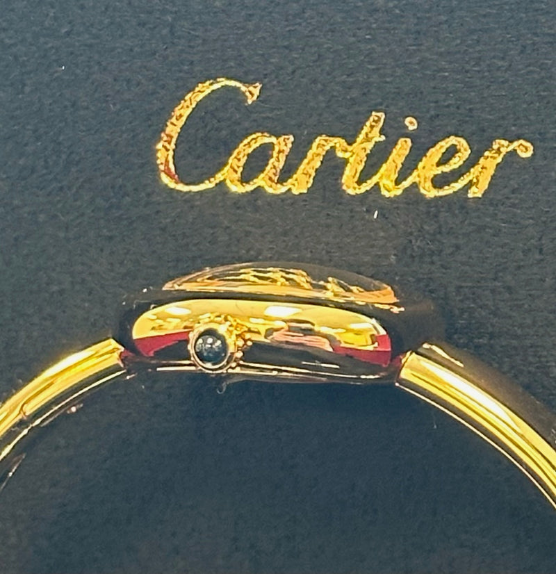 This watch depicts no signs of wear. This watch includes the original Cartier box and warranty card. The watch also includes a 1 year David and Sons Timepiece warranty.