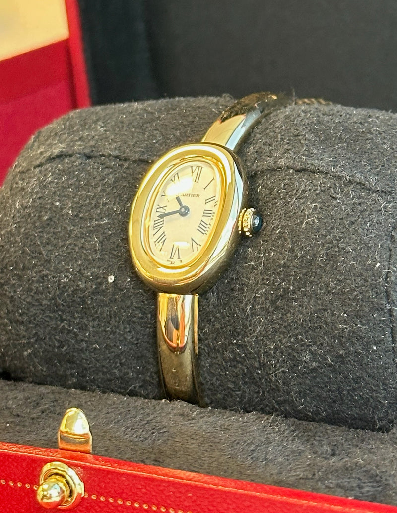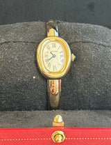 Unworn 2024 24.6 x 18.7mm Yellow Gold WGBA0044 Baignoire Mini Size 15 White Dial with a Yellow Gold Bezel on a Full Yellow Gold Cartier Bracelet.