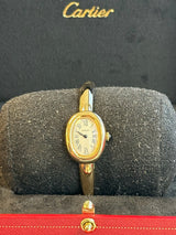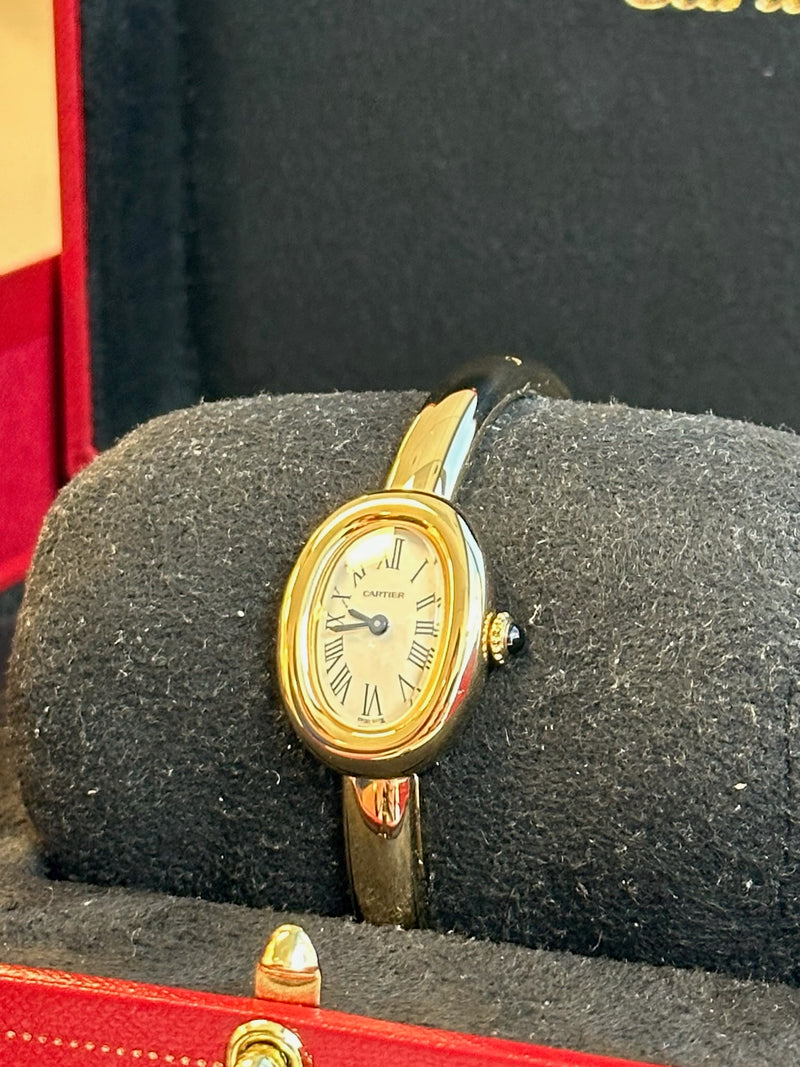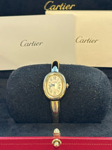 Unworn 2024 24.6 x 18.7mm Yellow Gold WGBA0045 Baignoire Mini Size 16 White Dial with a Yellow Gold Bezel on a Full Yellow Gold Cartier Bracelet.