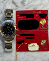 This watch depicts somes signs of wear. This watch includes the original Omega box and warranty paperwork. The watch also includes a 1 year David and Sons Timepiece warranty.