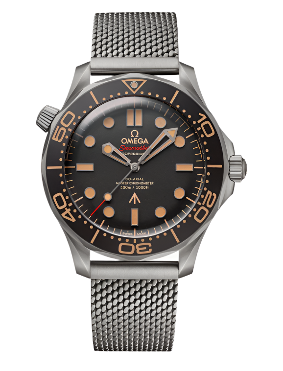 Unworn 2023 42mm Titanium 210.90.42.20.01.001 Omega Seamaster Diver 300M Brown Dial with a Brown Bezel on a Titanium Bracelet.