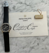 This watch depicts some signs of wear, and includes the original Patek Philippe box and papers. The watch also includes a 1 year David and Sons Timepiece warranty.