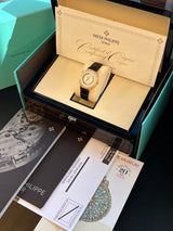 This watch depicts no signs of wear. This watch includes the original Patek Philippe box and warranty paperwork. The watch also includes a 1 year David and Sons Timepiece warranty.