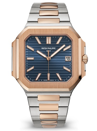 Unworn 2024 45mm Two Tone Rose Gold 5821/1AR Patek Philippe Cubitus Blue Dial on a Two Tone Rose Gold Bracelet.