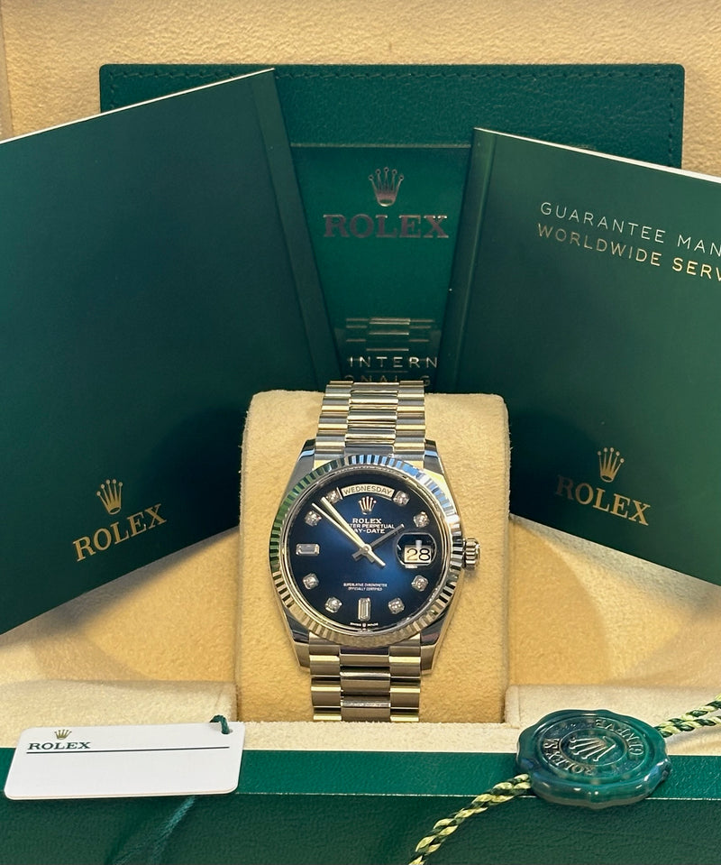 Rolex - Pre-owned White Gold Day-Date 36 Presidential Blue Ombre Diamond Dial 128239