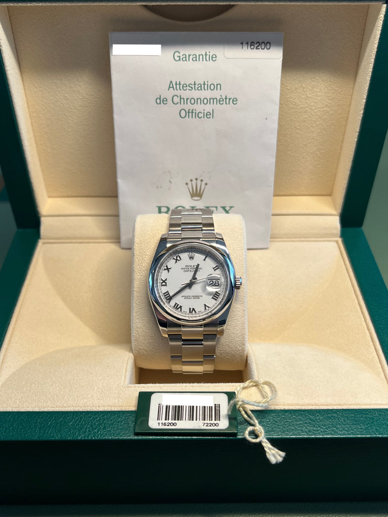 Rolex - Pre-owned Datejust 36 White Roman Dial 116200