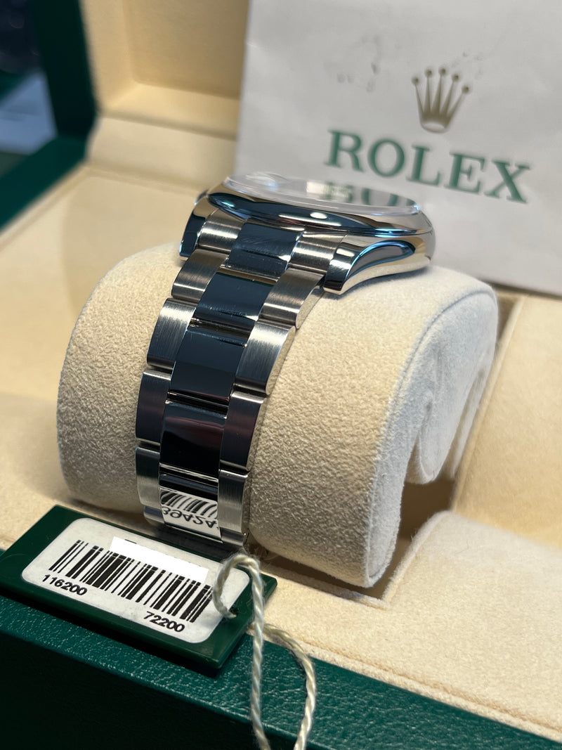 Pre-owned 2006 36mm Stainless Steel 116200 Rolex Datejust White Roman Dial with a smooth Bezel.