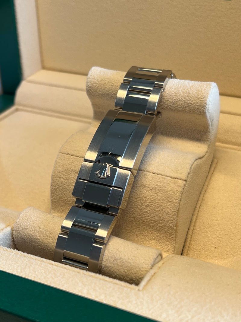 This watch depicts minimal signs of wear. This watch includes the original Rolex warranty card and the original Rolex box. The watch also includes a 1 year David and Sons Timepiece warranty.