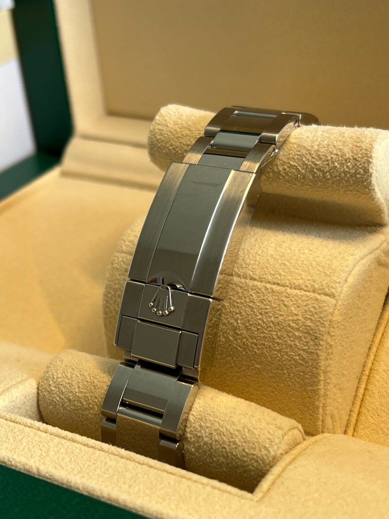 This watch depicts minimal signs of wear. This watch includes the original Rolex warranty card and the original Rolex box. The watch also includes a 1 year David and Sons Timepiece warranty.