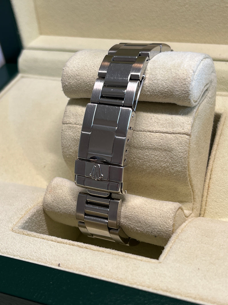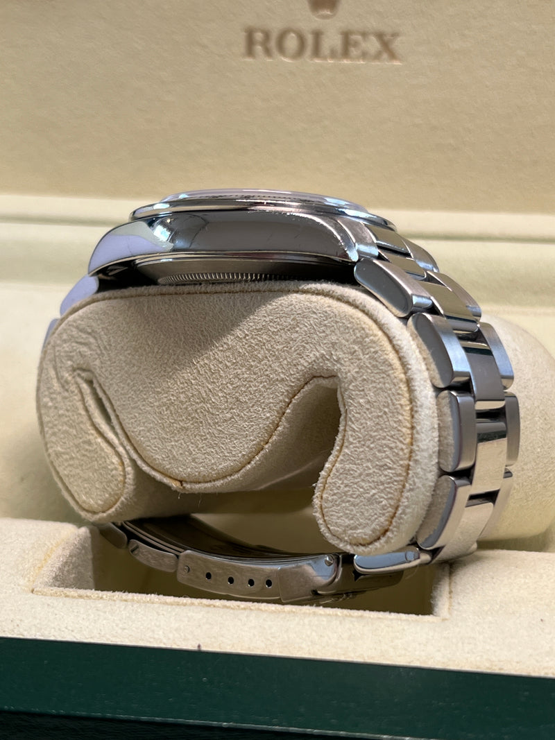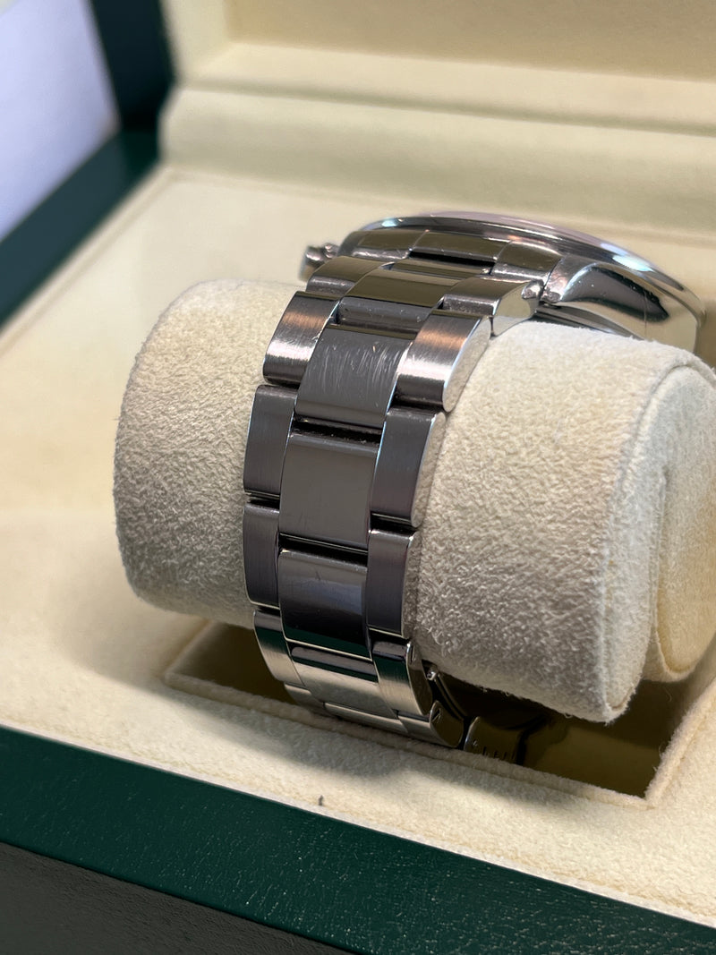 This watch depicts signs of wear. The watch includes the original box and has a factory service dial. The watch also includes a 1 year David and Sons Timepiece warranty.