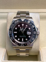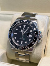 Pre-owned 2012 40mm Stainless Steel 116710 Rolex GMT-Master II Black Dial on an Oyster Bracelet.