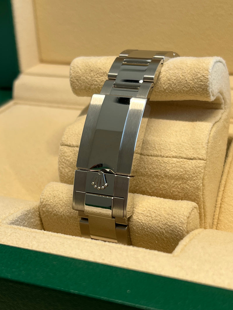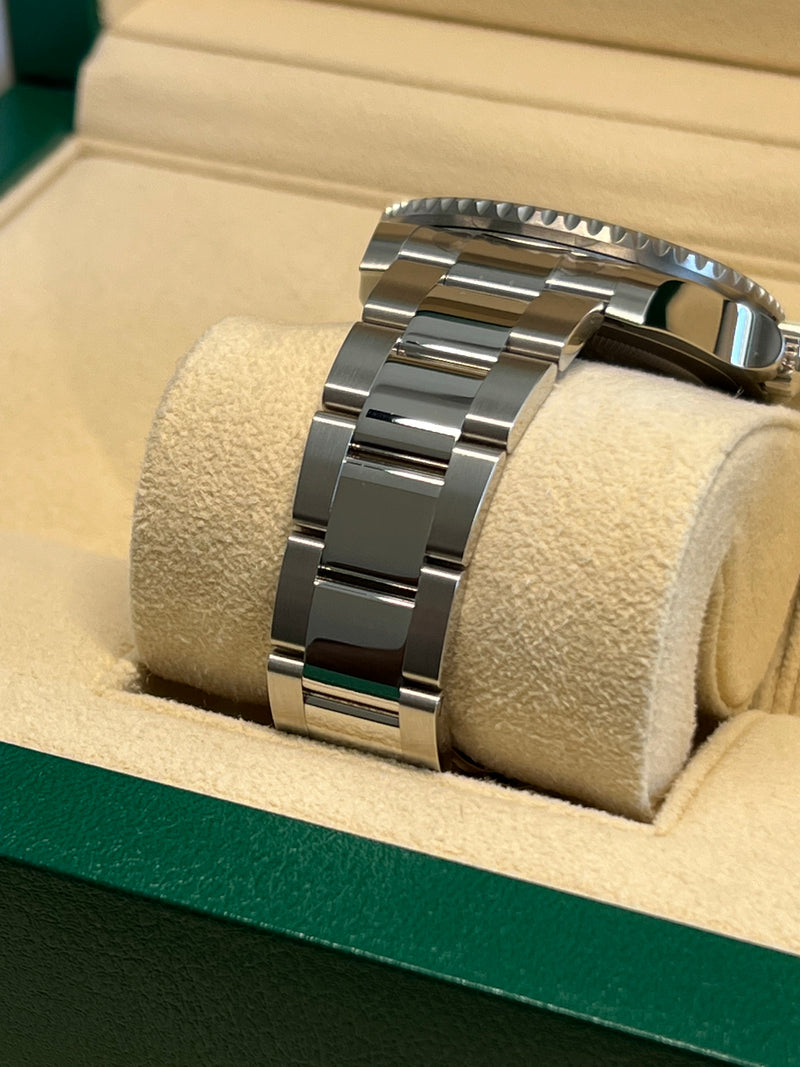 This watch depicts no signs of wear. This watch includes the original Rolex box and warranty card. The watch also includes a 1 year David and Sons Timepiece warranty.