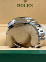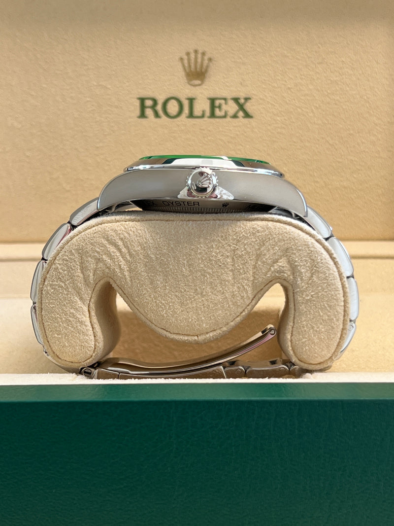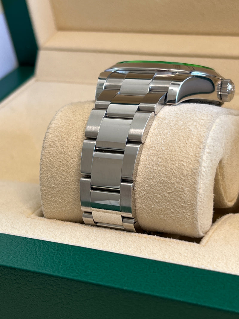 This watch includes the original Rolex warranty card and the original Rolex box. The watch also includes a 1 year David and Sons Timepiece warranty.