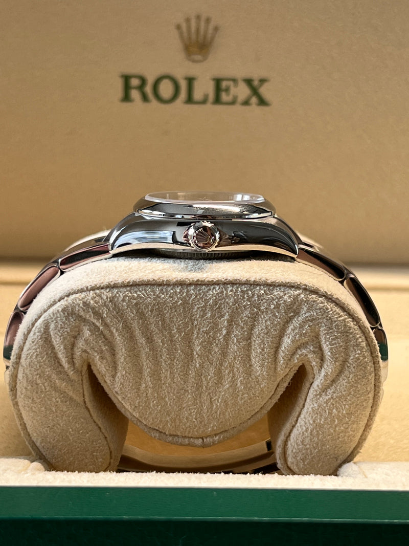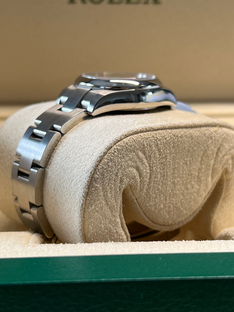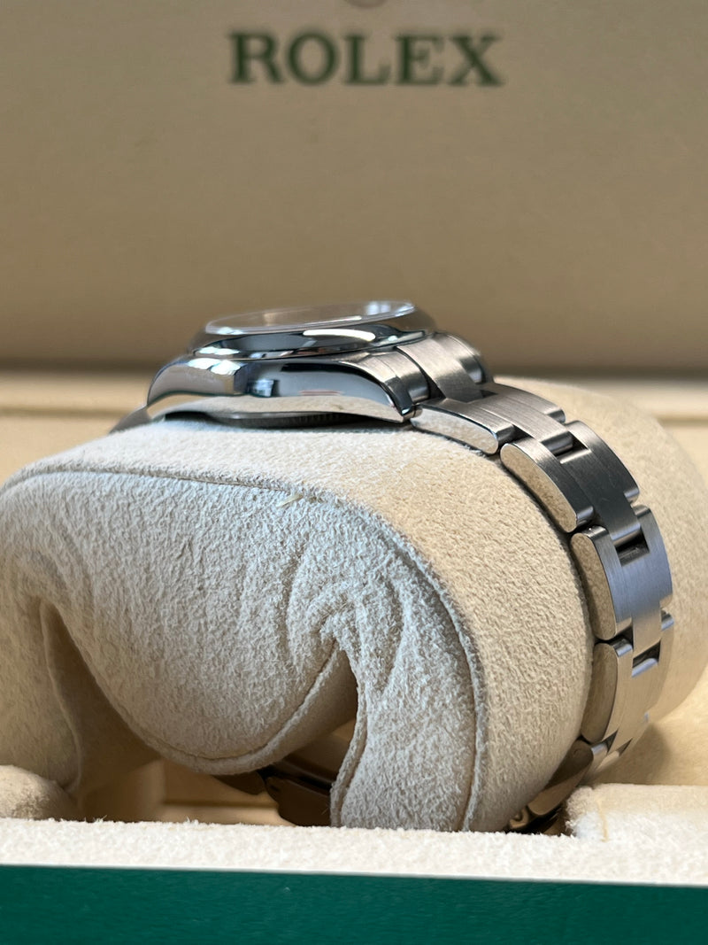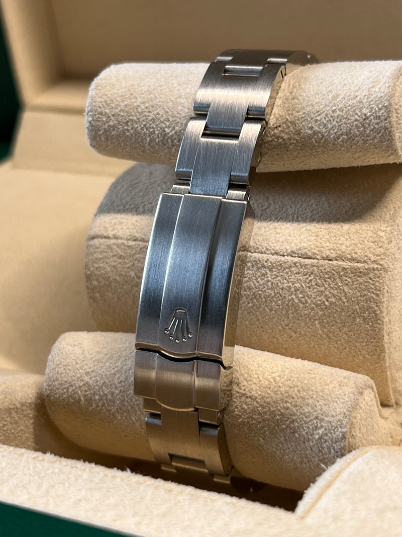 This watch depicts some signs of wear. This watch includes the original Rolex warranty card and box. The watch also includes a 1 year David and Sons Timepiece warranty.
