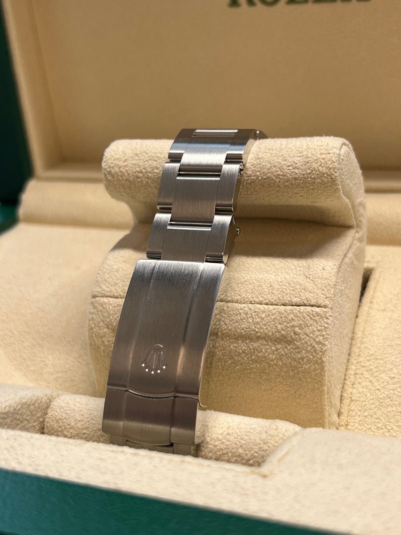 This watch depicts some signs of wear. This watch includes the original Rolex warranty card and box. The watch also includes a 1 year David and Sons Timepiece warranty.
