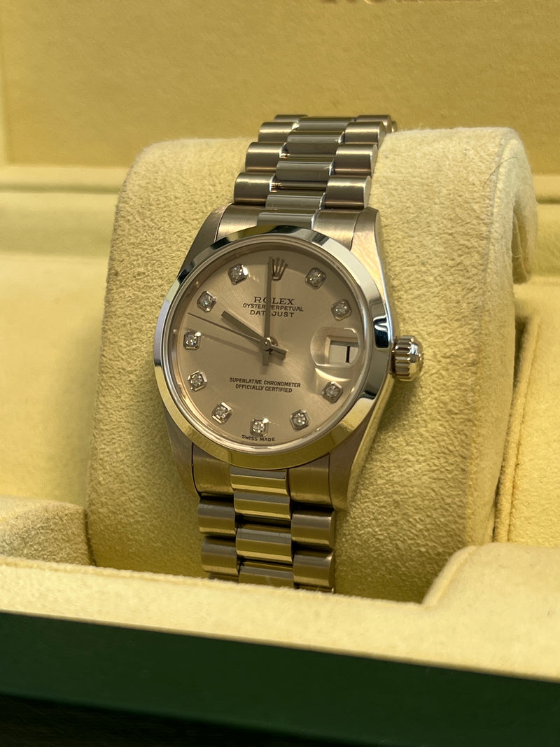 Rolex - Pre-owned Platinum Datejust 31 Silver Diamond Dial 78246