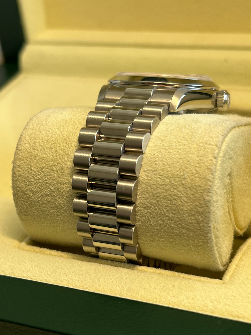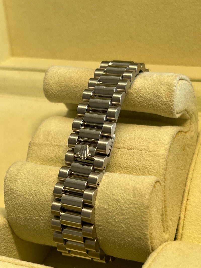 Pre-owned 2000 31mm Platinum 78246 Rolex Silver Diamond Dial Datejust. This watch depicts some signs of wear. This watch includes the original box. The watch also includes a 1 year David and Sons Timepiece warranty.