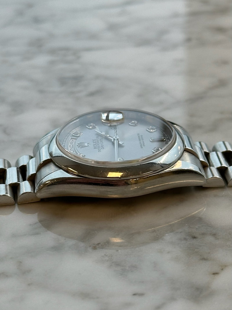 Pre-owned 2001 36mm Platinum 118206 Rolex Ice Blue Diamond Dial Day-Date 36 "Presidential".