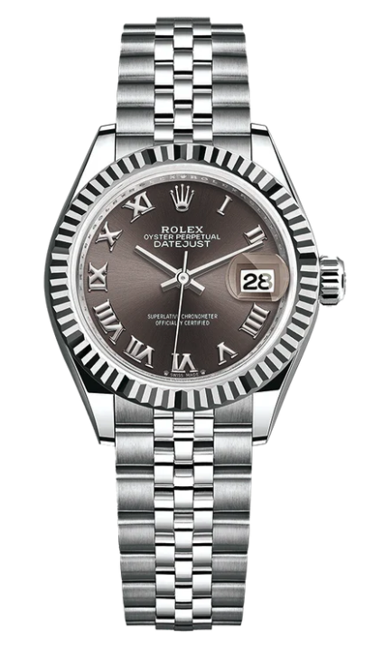 Rolex - Pre-owned Stainless Steel Lady-Datejust 28mm Grey Roman Dial 279174