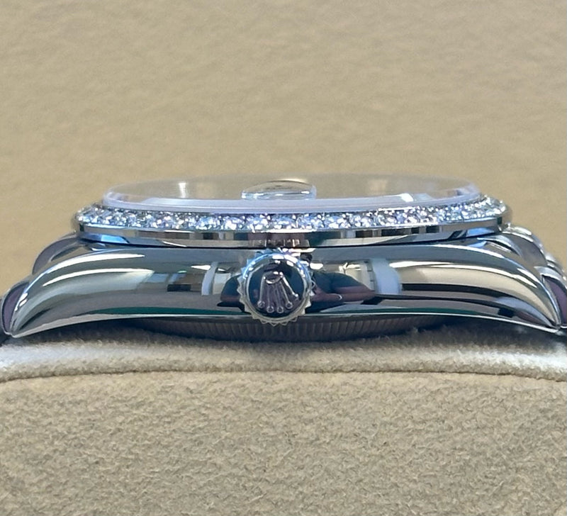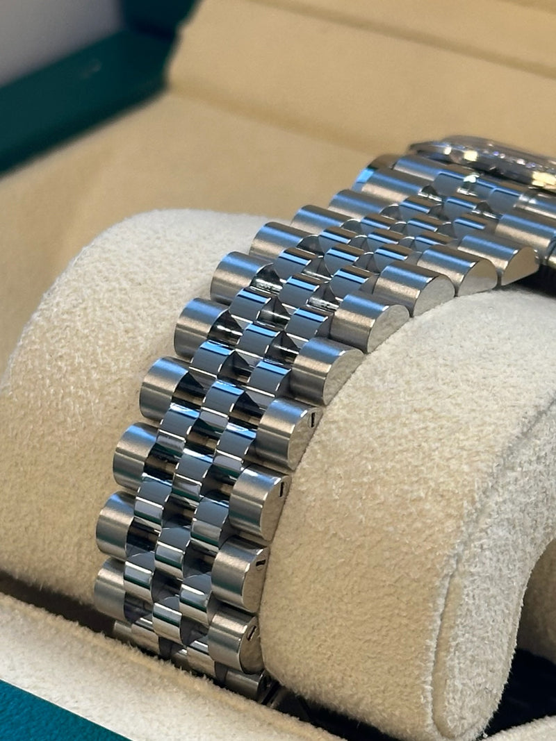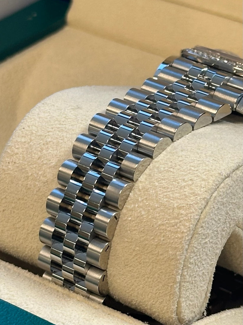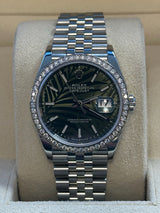 Rolex - Pre-owned Stainless Steel Datejust 36 Green Palm Motif Dial Diamond Bezel Jubilee Bracelet 126284RBR