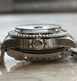 This watch depicts signs of wear. This watch includes the original Rolex box. The watch also includes a 1 year David and Sons Timepiece warranty.