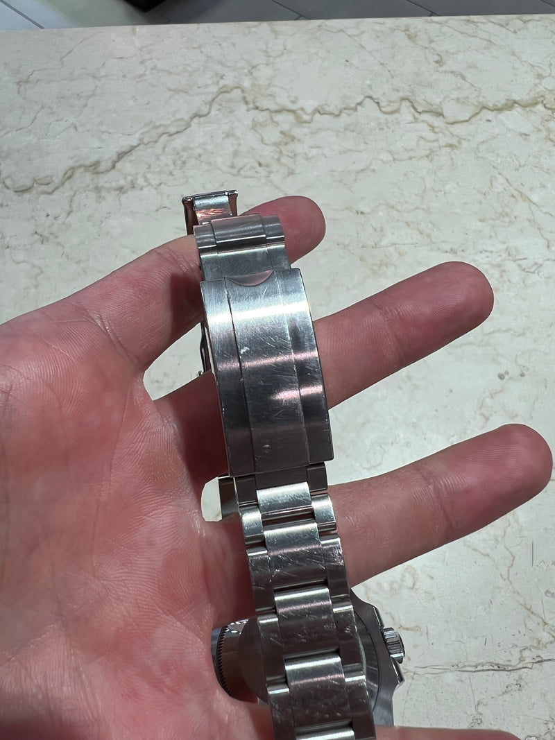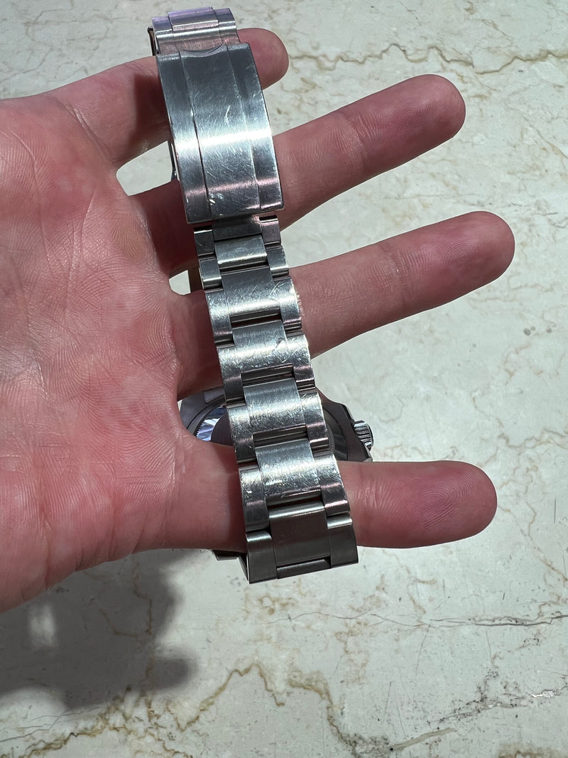 This watch depicts signs of wear, and includes the original Rolex warranty card and box. The watch also includes a 1 year David and Sons Timepiece warranty.