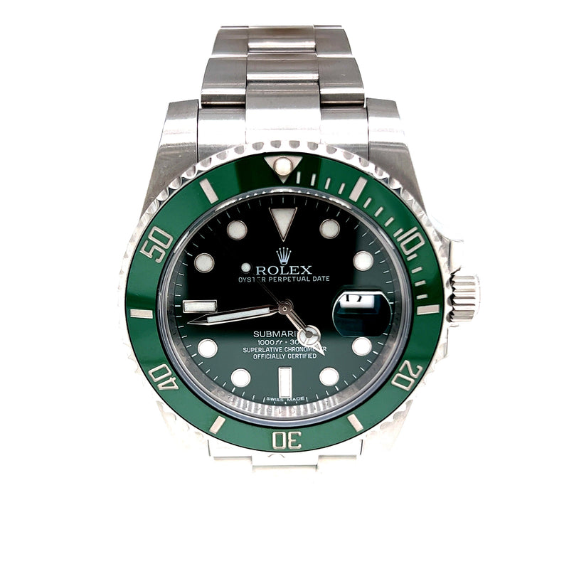 Pre-owned 2012 40mm Stainless Steel 116610LV Rolex Submariner “Hulk”.
