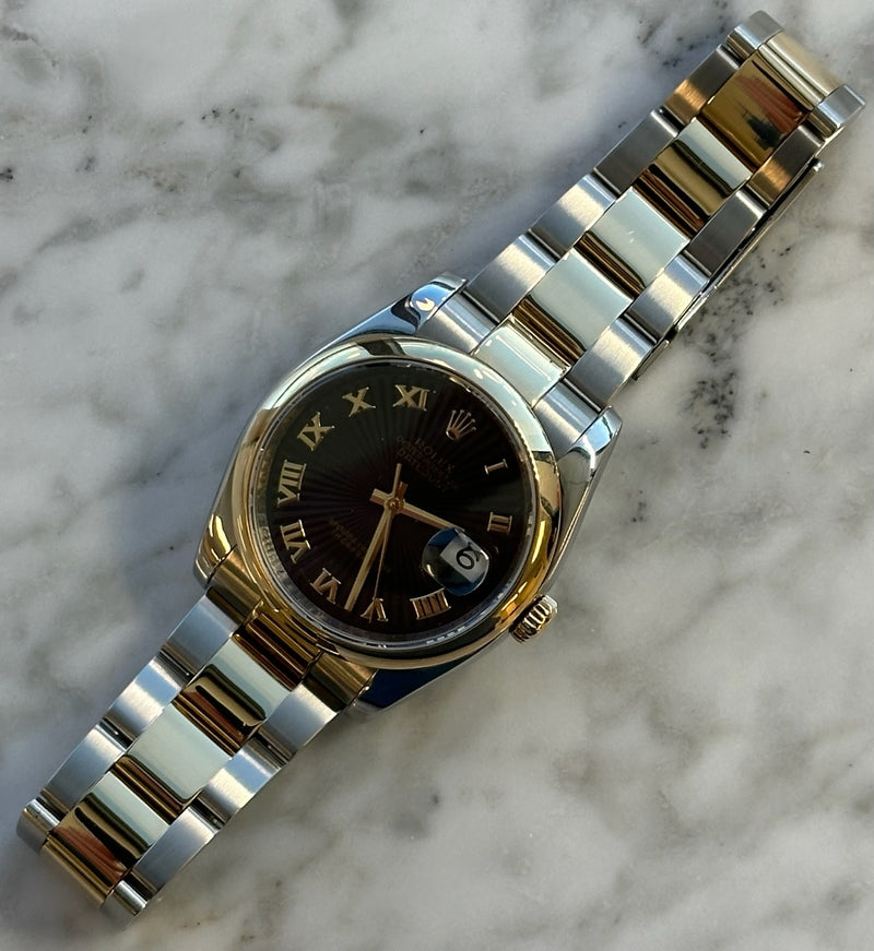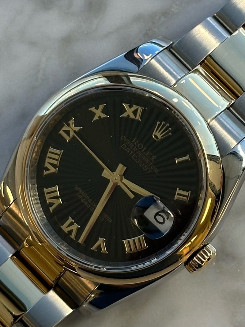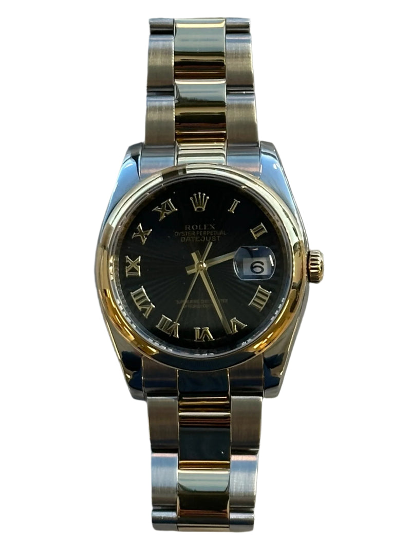 Rolex - Pre-owned Two Tone Yellow Gold Datejust 36 Black Dial 116203