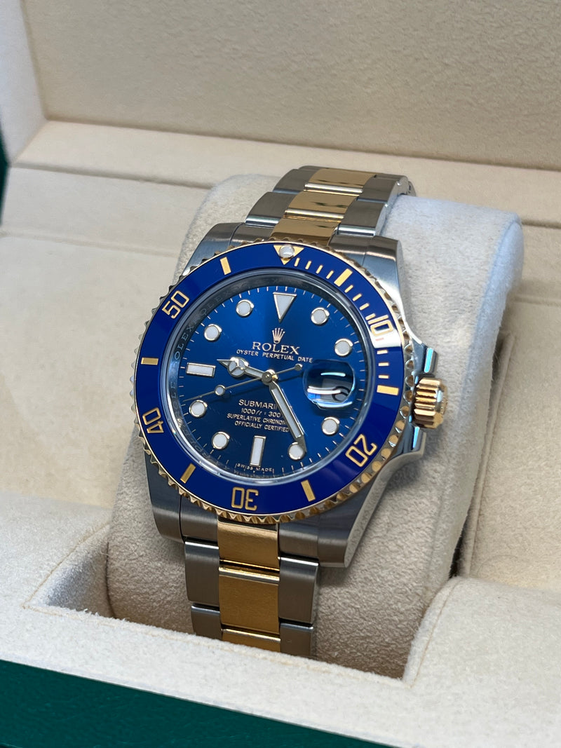 Pre-owned 2017 40mm Two Tone Yellow Gold 116613 Rolex Submariner "Bluesy".