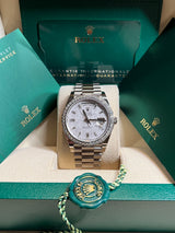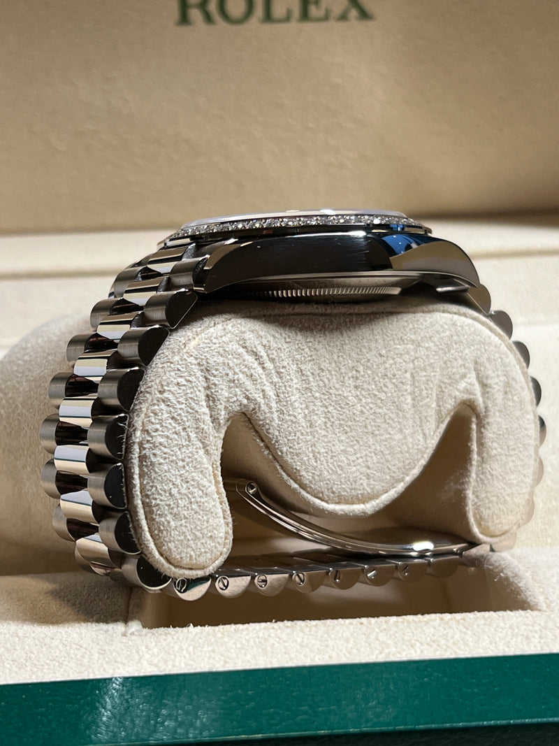Rolex - Pre-owned White Gold Day-Date 40 Presidential Meteorite Baguette Dial Diamond Bezel 228349RBR