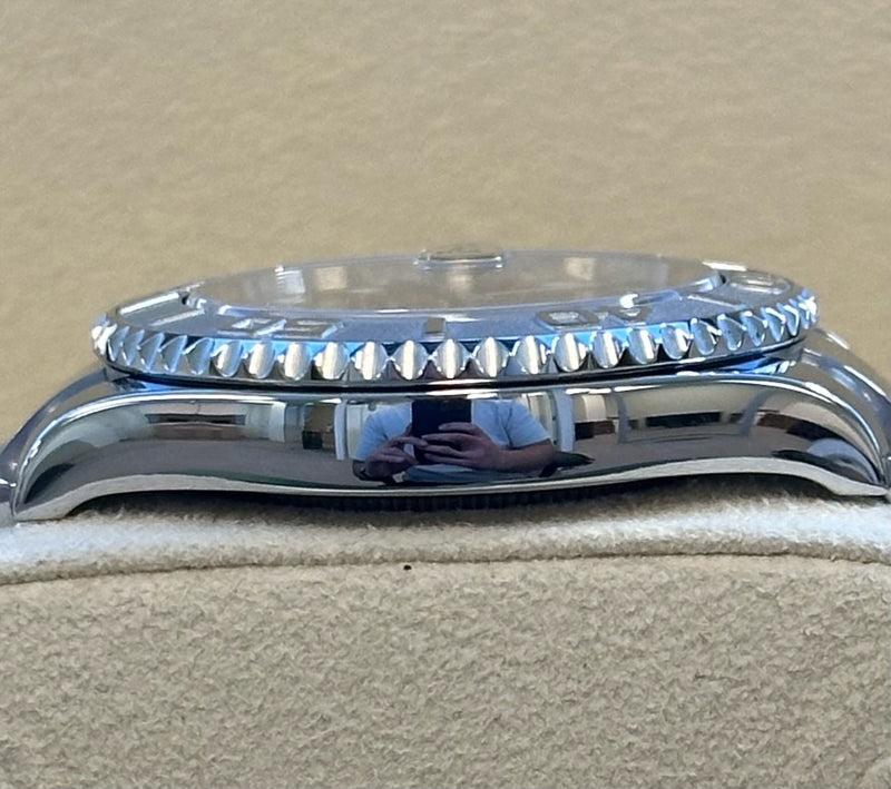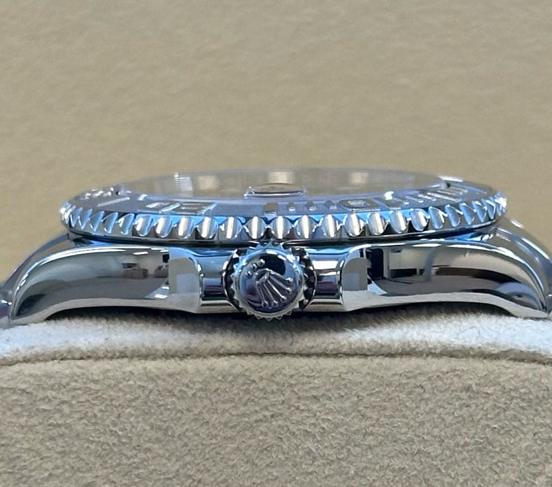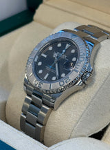 Pre-owned 2023 37mm Stainless Steel 268622 Rolex Yacht-Master Rhodium Dial with a Platinum Bezel on an Oyster Bracelet.