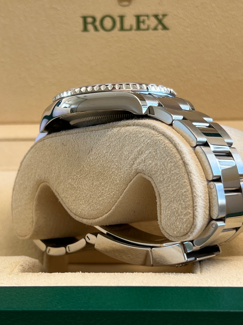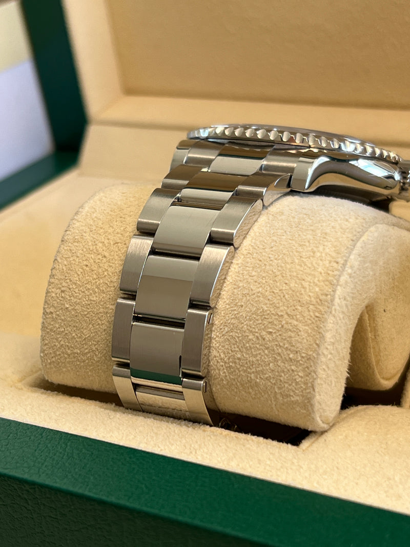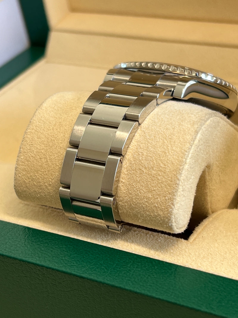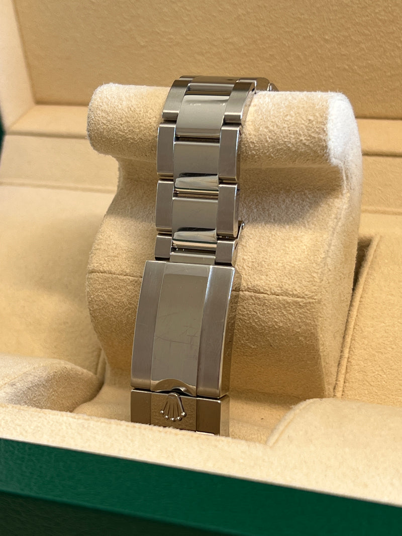 This watch depicts some signs of wear. This watch includes the original Rolex box and warranty card. The watch also includes a 1 year David and Sons Timepiece warranty.