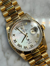 Rolex - Pre-owned Yellow Gold Day-Date 36 18238 Double Quick Set Arabic Day & Date-Wheel Mother of Pearl (MOP) Dial with Saudi Arabian Crest