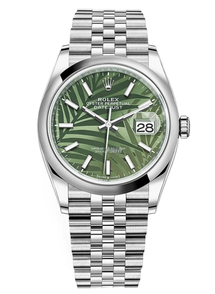 Rolex - Unworn Datejust 36 Green Palm Motif Dial Jubilee Bracelet 126200