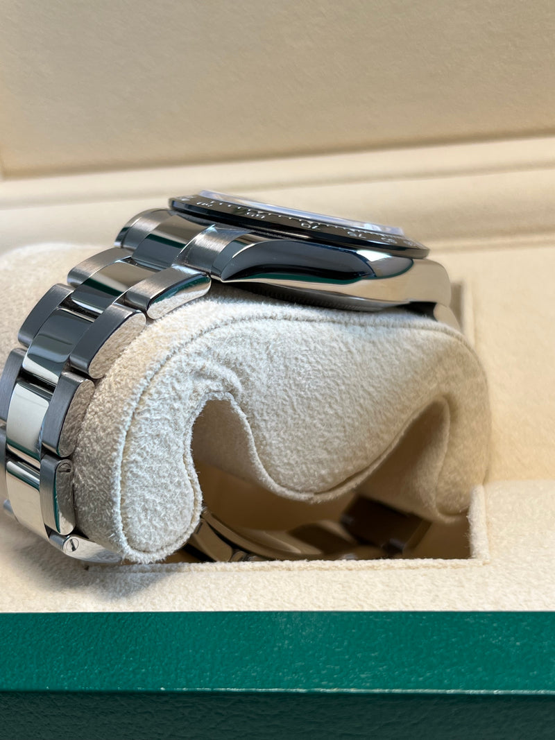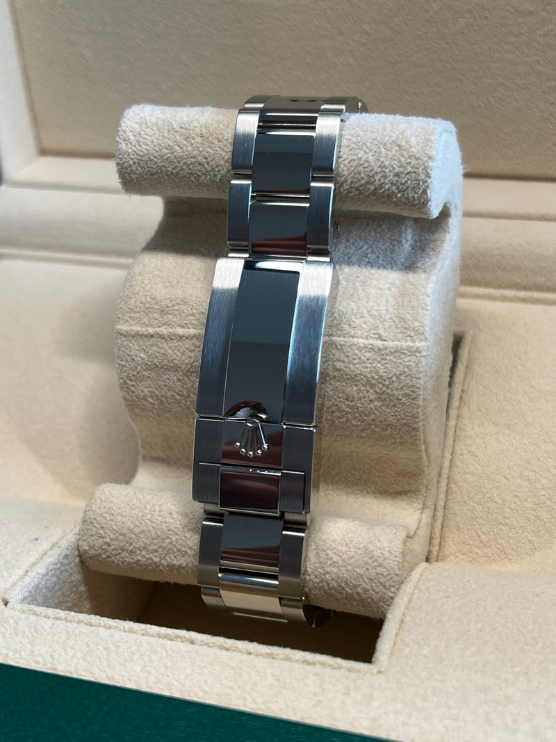 This watch depicts no signs of wear. This watch includes the original Rolex warranty card and box. The watch also includes a 1 year David and Sons Timepiece warranty.