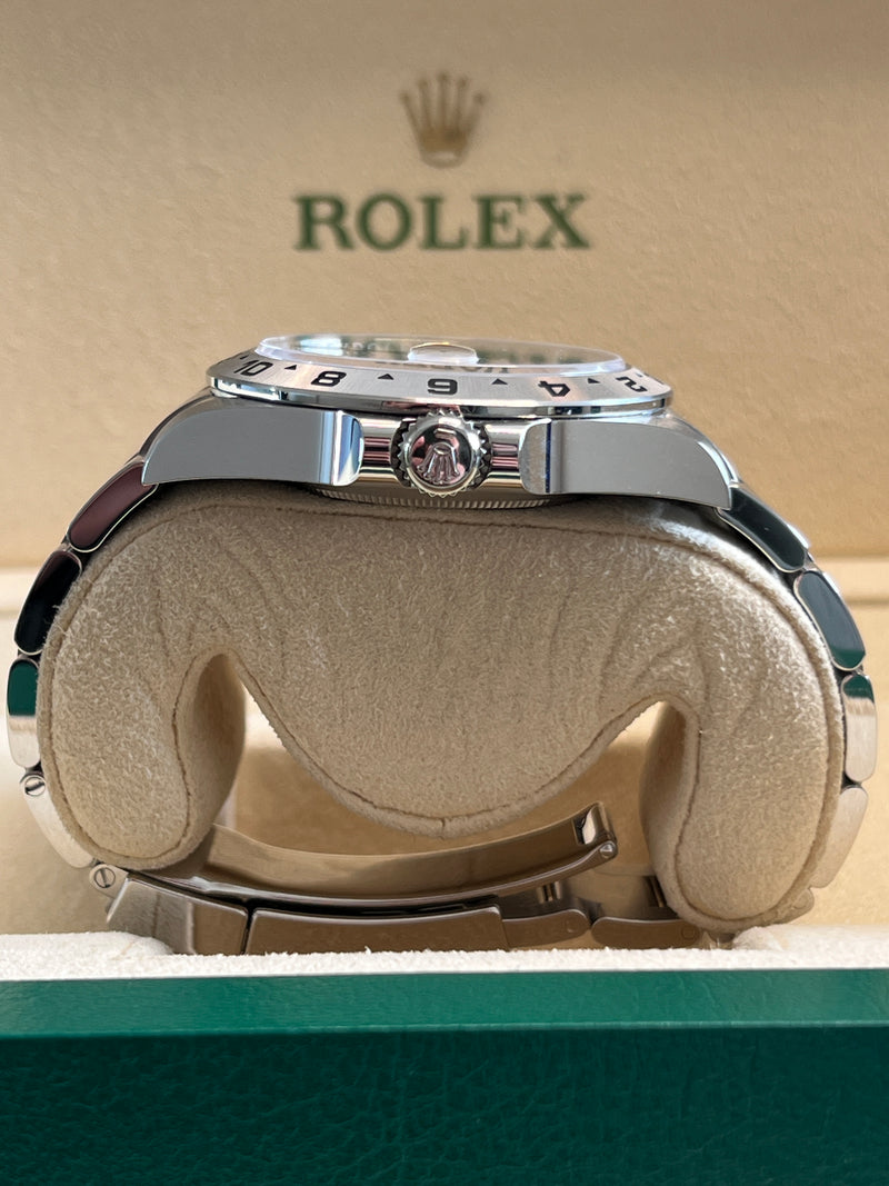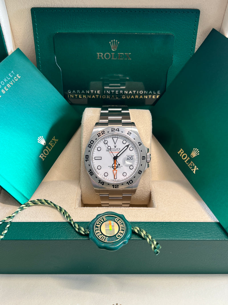 Unworn 2024 42mm Stainless Steel 226570 Rolex Explorer II White Dial With a Stainless Steel Bezel on an Oyster Bracelet.