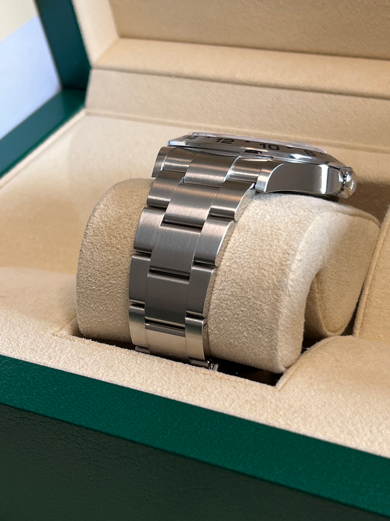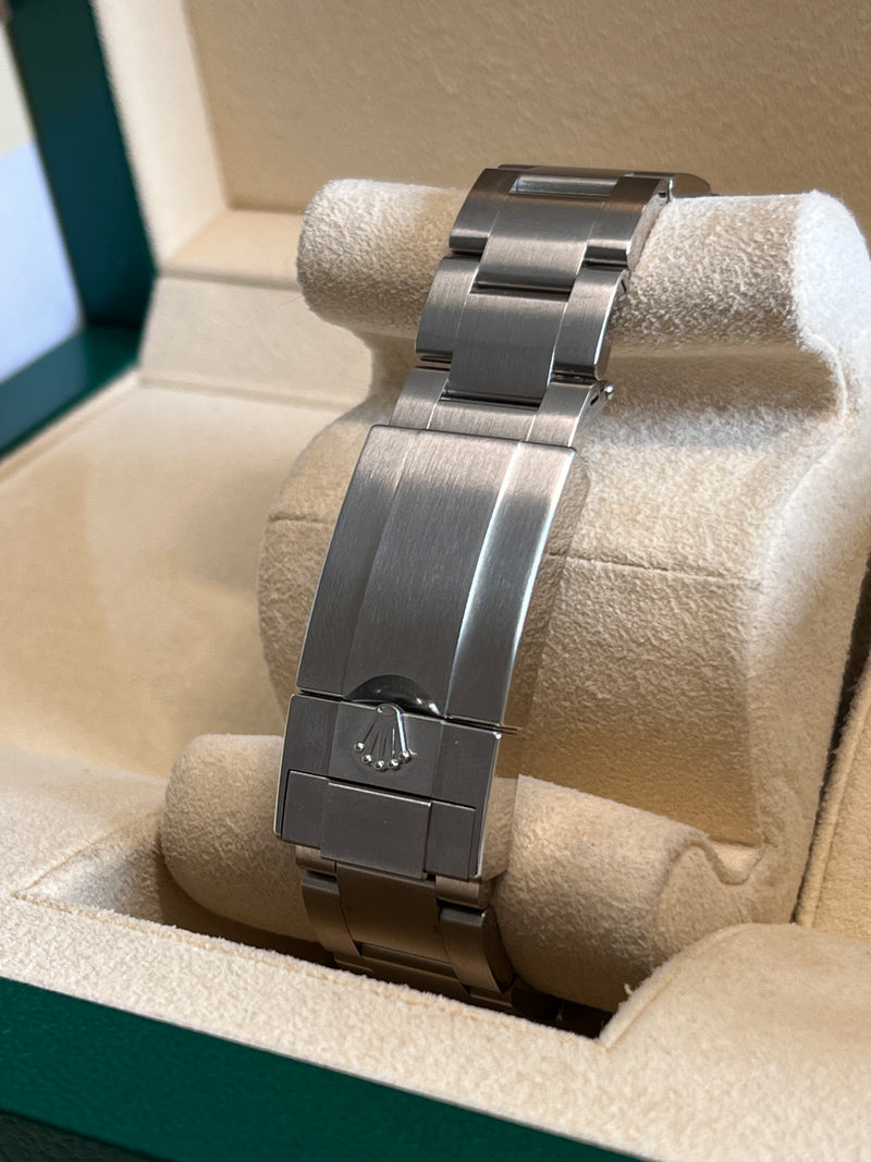 This watch depicts no signs of wear. This watch includes the original Rolex warranty card and box. The watch also includes a 1 year David and Sons Timepiece warranty.
