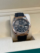 Rolex - Unworn Rose Gold Sky-Dweller Rhodium Dial Oysterflex 326235