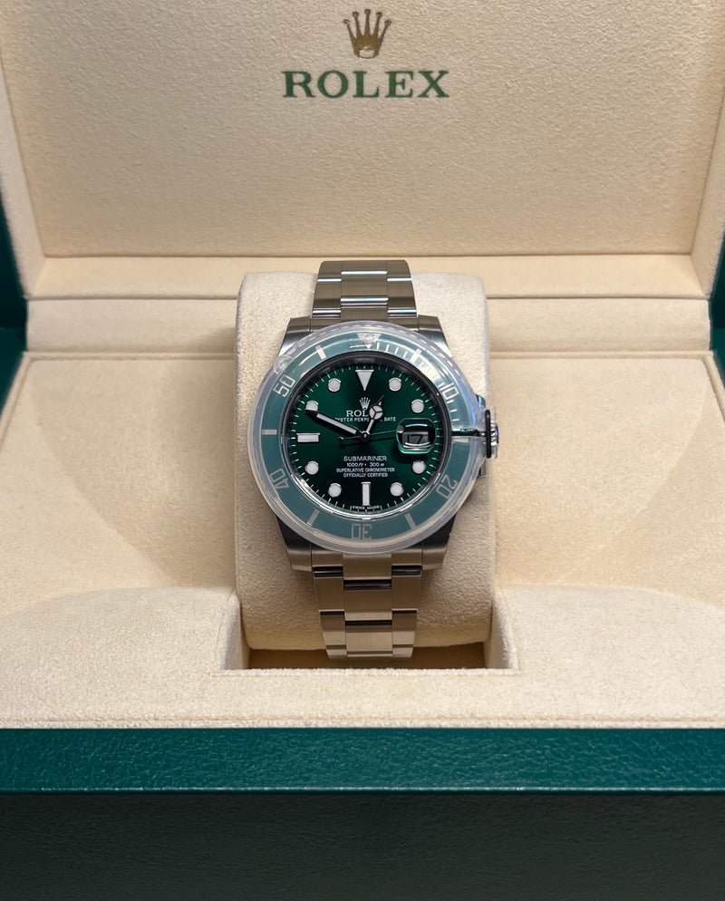 Unworn 2010 40mm Stainless Steel 116610LV Rolex Submariner “Hulk”. This is the first year of production for the Hulk.