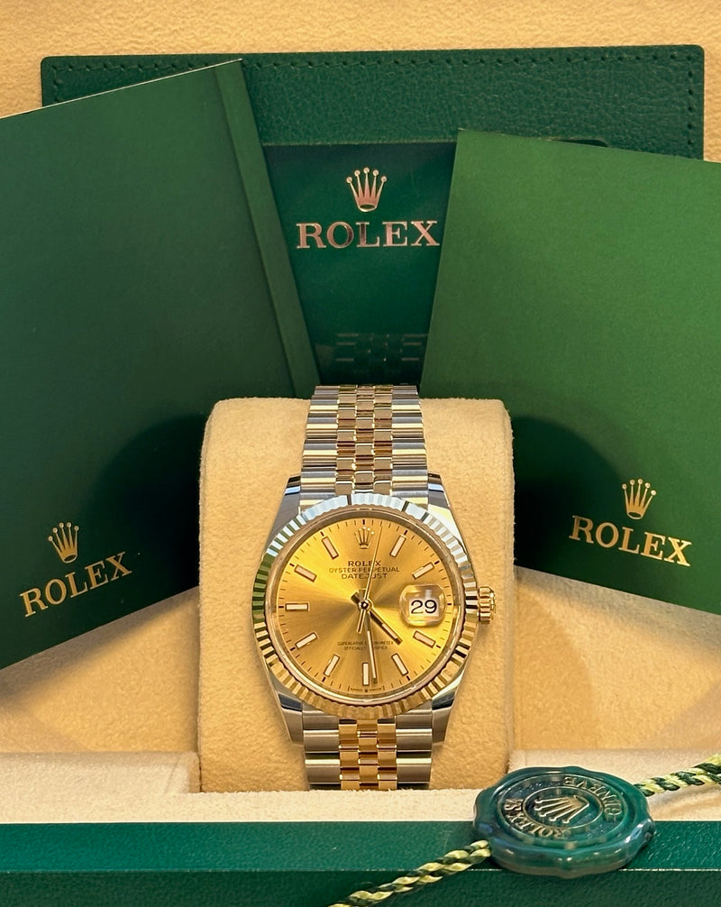 Rolex - Unworn Two Tone Yellow Gold Datejust 36 Champagne Index Dial Jubilee Bracelet 126233
