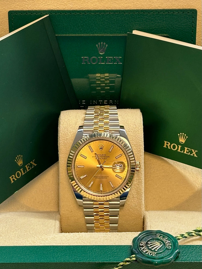 Rolex - Pre-owned Two Tone Yellow Gold Datejust 41 Champagne Index Dial Jubilee Bracelet 126333