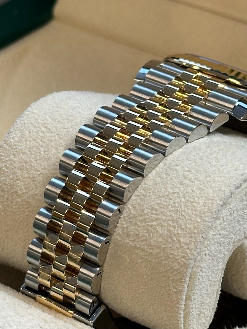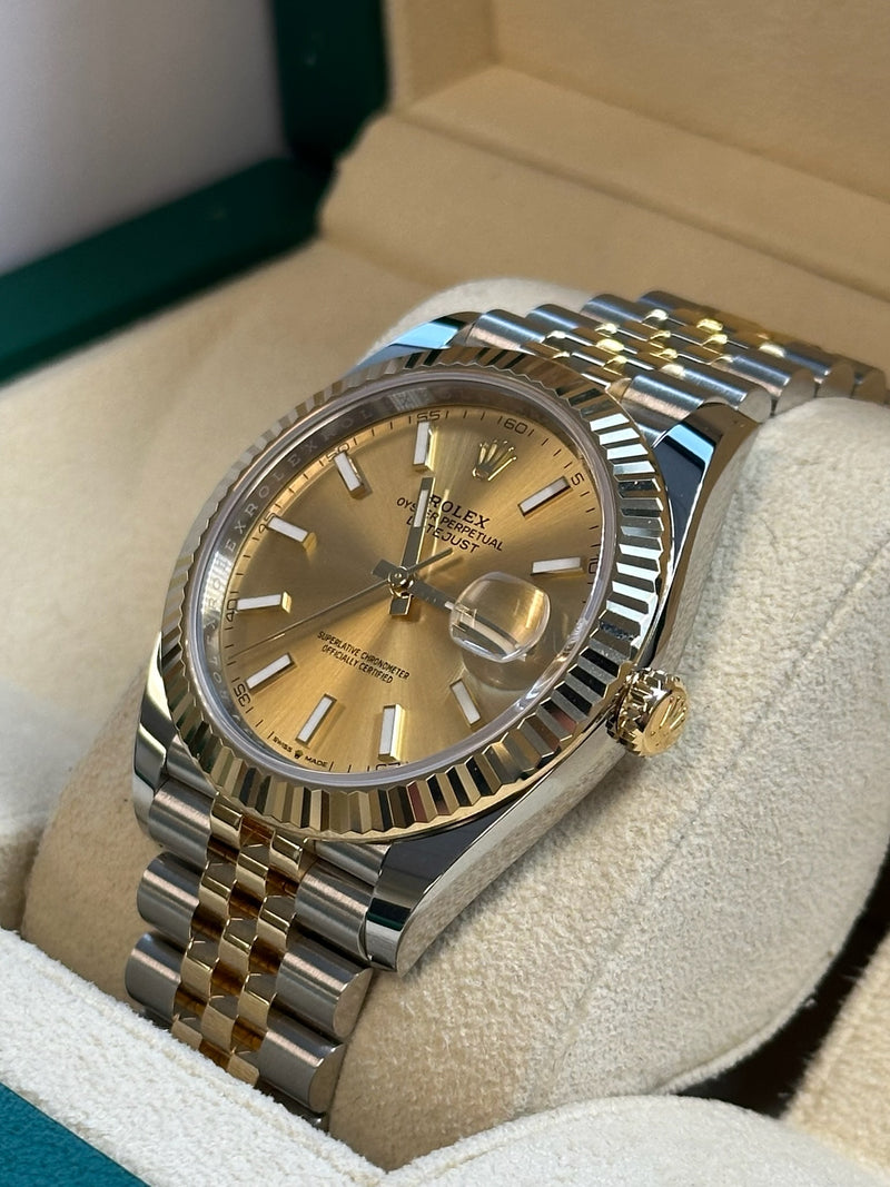 Pre-owned 2022 41mm Two Tone Yellow Gold 126333 Rolex Datejust 41 Champagne Dial with a Yellow Gold Fluted Bezel on a Jubilee Bracelet.
