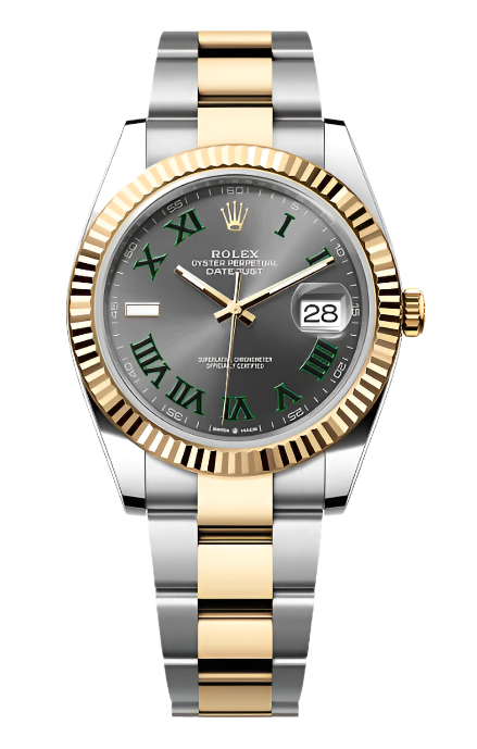 Unworn 2024 41mm Two Tone Yellow Gold 126333 Rolex Datejust 41 Wimbledon Roman Dial with a Yellow Gold Fluted Bezel on an Oyster Bracelet.